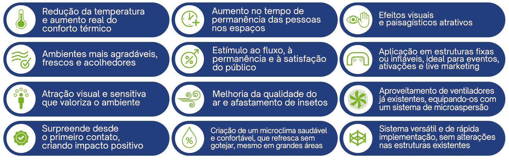 - Possibilidade de acoplar o aro aspersor a um ventilador existente;
