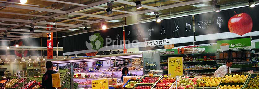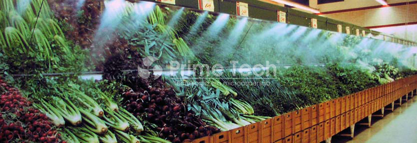 Os sistemas de microaspersão de água permitem otimizar a conservação de frutas, verduras, legumes e carnes nas melhores condições, controlando o nível de umidade necessária e mantendo-os com um belo aspecto visual, tátil e qualitativo por muito mais tempo.